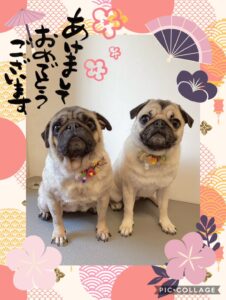 パグのきなこちゃん、みかんちゃん